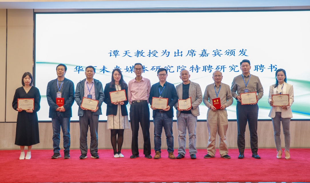 为了促进粤港澳大湾区融创人才的培养,为了推进学界与业界的深度合作,在此次论坛上,广州华商学院未来媒体研究院院长谭天教授特为出席嘉宾颁发了华商未来媒体研究院特聘研究员聘书,广州华商学院传播与传媒学院院长赵维江教授特为出席嘉宾颁发了华商传播与传媒学院业界导师聘书。