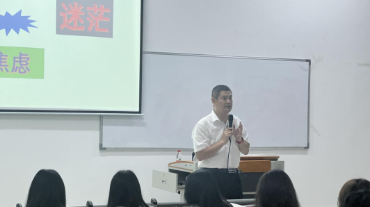 讲座伊始,罗老师指出当下大学生普遍存在的心理问题:迷茫、焦虑、内卷。这是由于时代变化、经济增速放缓,各种压力随之而来,导致了年轻人对未来充满迷茫,从而引发各种悲观消极的情绪,对生活产生无力感,于是就出现了心理上的断奶现象——“空心病”。