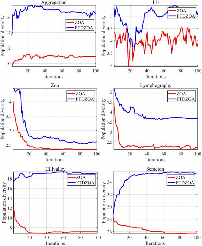 3.鲁棒性与适应性:FTDZOA在处理含有噪声或冗余特征的数据集时表现出了强大的鲁棒性。通过多种策略的联合优化,算法能够有效识别并去除无关或冗余特征,降低了噪声对模型性能的负面影响,提升了算法的适应性。