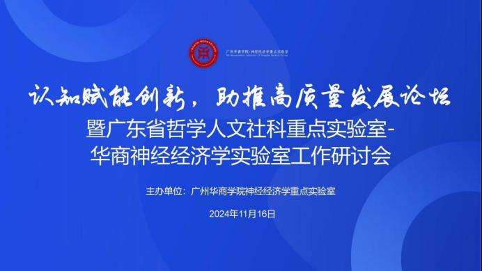 2024年11月16日,由广东省哲学人文社科重点实验室-神经经济学重点实验室举办的“认知赋能创新,助推高质量发展”论坛暨广东省哲学人文社科重点实验室-华商神经经济学实验室工作研讨会在广东广州召开。