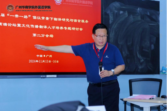 初冬的广州,暖阳高照;美丽的花城,生机盎然。2024年11月15-16日,由广东省翻译协会和广州华商学院外国语学院主办,外语教学与研究出版社、复旦大学出版社、外文伯牙国际合作创新发展中心、广东省研思智教技术研究院协办的第三届“一带一路”倡议背景下翻译研究与语言服务高端论坛暨文化传播翻译人才培养专题研讨会在广州华商学院(广州校区)隆重举行,来自中国科学院科技翻译协会、中国翻译协会、广东省翻译协会、广东省高级人民法院外事办以及国内近30所高校的专家、学者与研究生230余人出席了会议。
