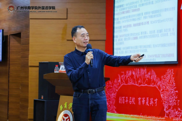 莫爱屏教授作题为《人工智能翻译教学模式的思考与探索》的主旨发言