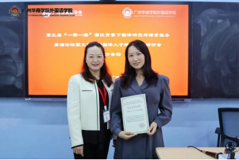 广东省翻译协会副会长、广东财经大学外国语学院院长陈冬纯教授代表主办单位致闭幕词。她指出,本次大会具有“深”、“实”、“新”三大特点。“深”在于深挖史料,细谈方略;“实”在于注重实践应用;“新”在于接地气,既链接现实需求,又对接国家战略发展。本次论坛的成果定能很好地助力‘一带一路’建设,对翻译学科建设与文化传播翻译人才培养产生积极的影响和有力的推动作用。闭幕式上,陈会长还对本次论坛的承担单位广州华商学院外国语学院以及所有协办单位细致周到的安排和高质量的服务工作表示衷心的感谢。她说,本次论坛能够成为一场高品位的学术盛宴离不开广州华商学院各级领导与各方面的大力支持和论坛会务组及广州华商学院外国语学院志愿者服务团队的默默付出和辛勤汗水。