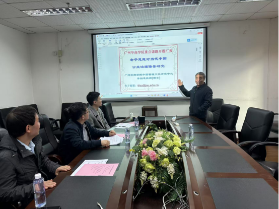 2025年1月9日下午,中国管理文化研究中心主任李招忠教授主持的校级重点培育项目《老子社会治理观对当代中国公共治理的借鉴研究》在暨南大学古中国文化史籍研究所会议室顺利开题。开题报告会邀请了暨南大学中国文化史籍研究所所长、博士生导师陈广恩教授,暨南大学乡村振兴研究院副院长、博士生导师杨森平教授,暨南大学国际关系学院、华侨华人研究院博士生导师石沧金教授,暨南大学哲学所讲师罗启权博士担任评议专家。课题主持人李招忠向与会专家汇报了广州华商学院重点课题研究设想和实施计划。