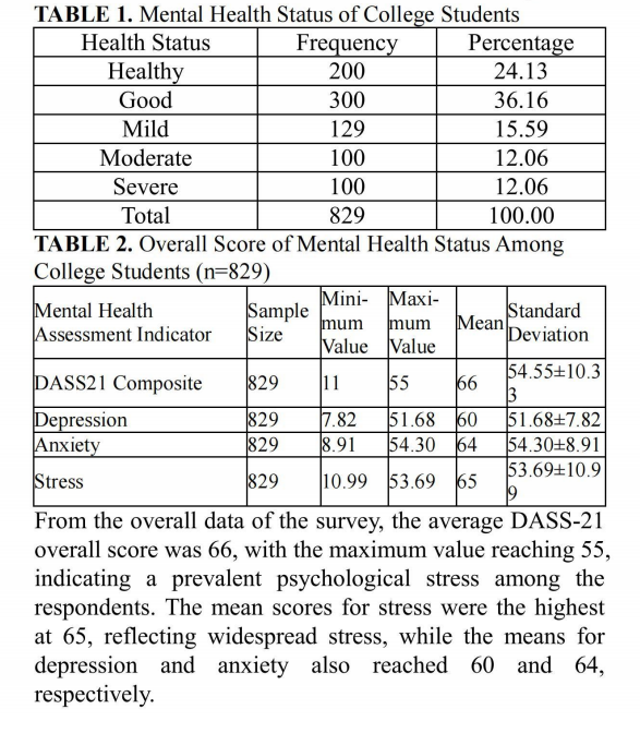 本文在通过心理剧的视角调查大学生抑郁、焦虑和压力的心理健康状况。本研究重点分析心理剧对大学生抑郁、焦虑和压力的影响,为在高校推广心理剧以缓解这些状况提供有效措施和依据。