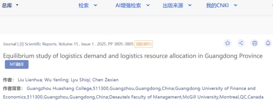 其与2020级学生吴艳玲合作发表于2025年的《Equilibrium Study of Logistics Demand and Logistics Resource Allocation in Guangdong Province》,结合熵权法与空间经济理论,对广东省物流需求与资源配置均衡发展演变趋势规律进行研究,为区域物流政策制定提供科学依据。