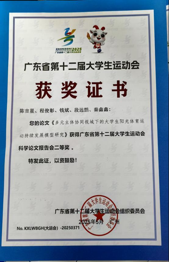 近日,广东省第十二届大学生运动会科学论文报告会评选结果揭晓,我校体育学院教师研究成果表现突出,荣获两项二等奖,展现了我校体育科学研究的扎实功底与创新活力。