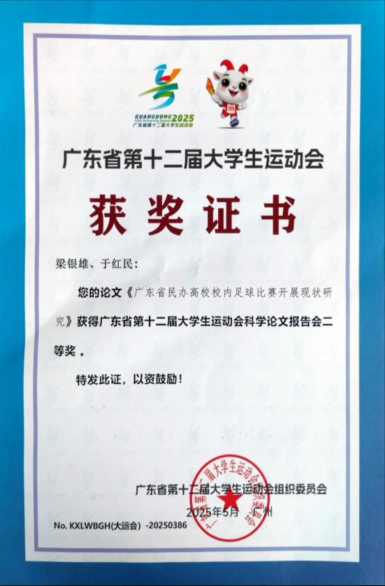 梁银雄老师和于红民副院长合作的论文《广东省民办高校校内足球比赛开展现状研究》,聚焦我省民办高校校内足球赛事现状,通过深入调研,精准指出了当前在赛事质量、场地安全、裁判水平及师资支撑等方面存在的问题,并提出具有实践意义的改进方案。该研究为提升我校乃至全省民办高校足球竞赛水平提供了理论依据和实践参考,也为教育主管部门优化校园足球政策提供了有力支持。