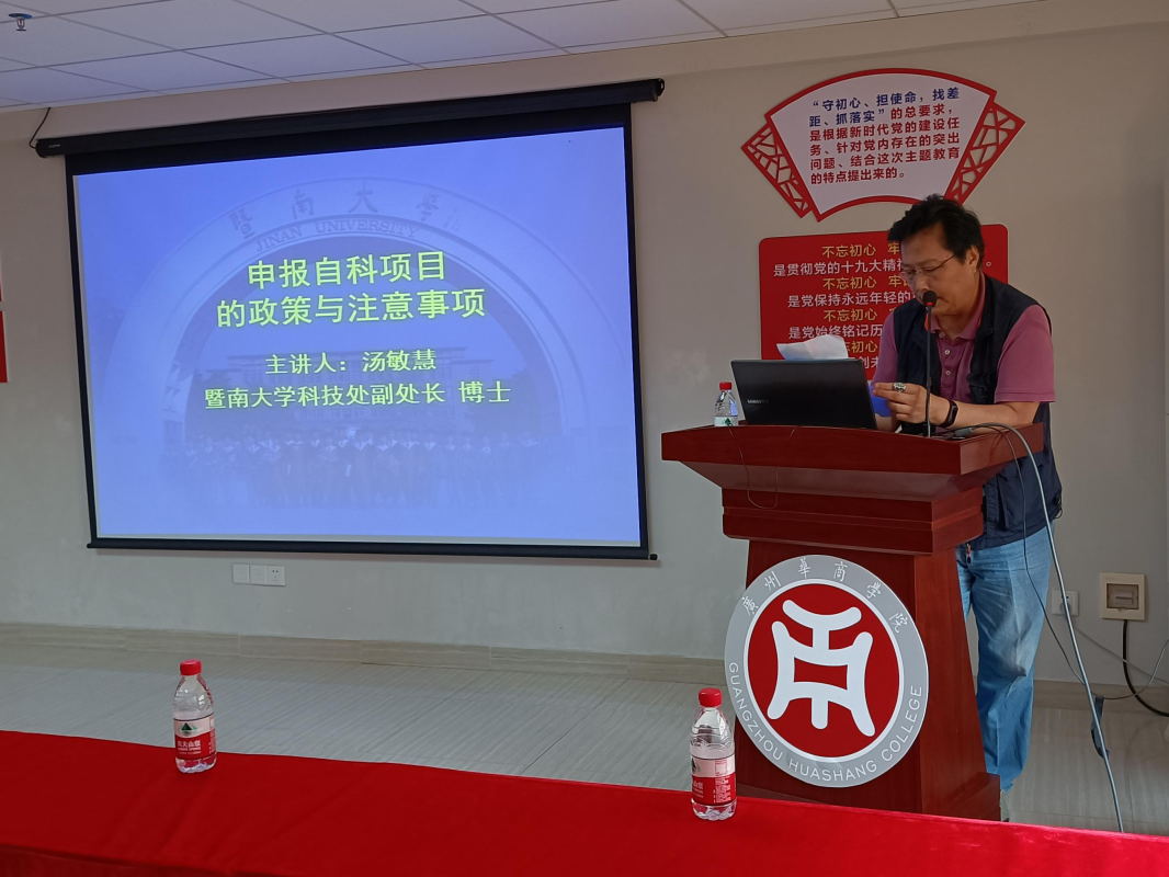 科研处董建新处长首先介绍了汤敏慧博士基本情况并简要介绍了暨南大学及其自科项目基本情况,并希望通过此次讲座使教师获得经验、提高教师申报自科项目的积极性、成功率。